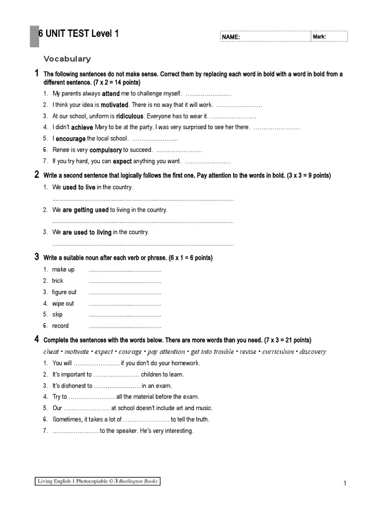 Examenes burlington books 1 bachillerato.